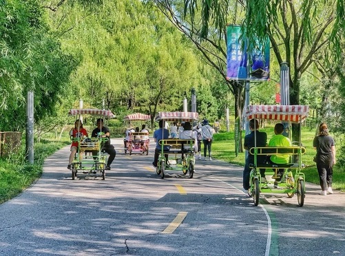騎行過(guò)程中,遇到上坡、下坡、橋、急拐彎、馬車(chē)、電瓶車(chē)、人員密集處等應下車(chē)推車(chē)行駛。騎行中車(chē)輛限速每小時(shí)5公里。 帶上您的家人、孩子,或與您的朋友一同融入歡樂(lè )的騎行時(shí)刻,既能沿途欣賞世博園美麗的風(fēng)景,又能在游玩中鍛煉身體。歡迎游客朋友們來(lái)到西安世博園,共同體驗生態(tài)旅游的健康、浪漫與溫馨。 |