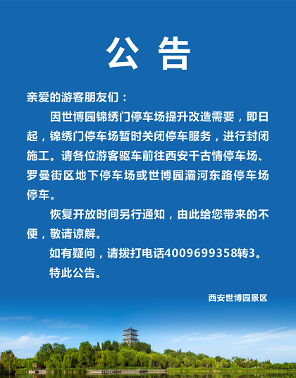關(guān)于錦繡門(mén)停車(chē)場(chǎng)封閉施工的公告