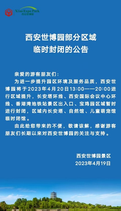 關(guān)于世博園部分區域臨時(shí)封閉的公告