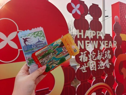 景區主要入口、游客服務(wù)中心及標志性展館被紅燈籠喜慶點(diǎn)綴,新春主題打卡點(diǎn)、新年對聯(lián)和窗花等無(wú)不透露出喜迎新春的祥和氛圍。西安世博園以濃厚的節日氛圍和特色的體驗活動(dòng),迎接每一位游客的到來(lái)。春節樂(lè )游園,參與景區舉辦的“福蛇獻瑞 世園迎春”2025新春游園城市漫游活動(dòng),不僅能游覽世博園景區頗具地方特色的展園和展館,感受古色古香的亭臺樓閣、曲折蜿蜒的中式長(cháng)廊、精致典雅的國風(fēng)花窗,每處都透露出濃厚的傳統文化底蘊。還能通過(guò)拍照打卡的方式在社交媒體分享游覽體驗,獲得世博園節日限定冰箱貼、書(shū)簽明信片、圍爐煮茶或非遺手作免費體驗券等眾多好禮。